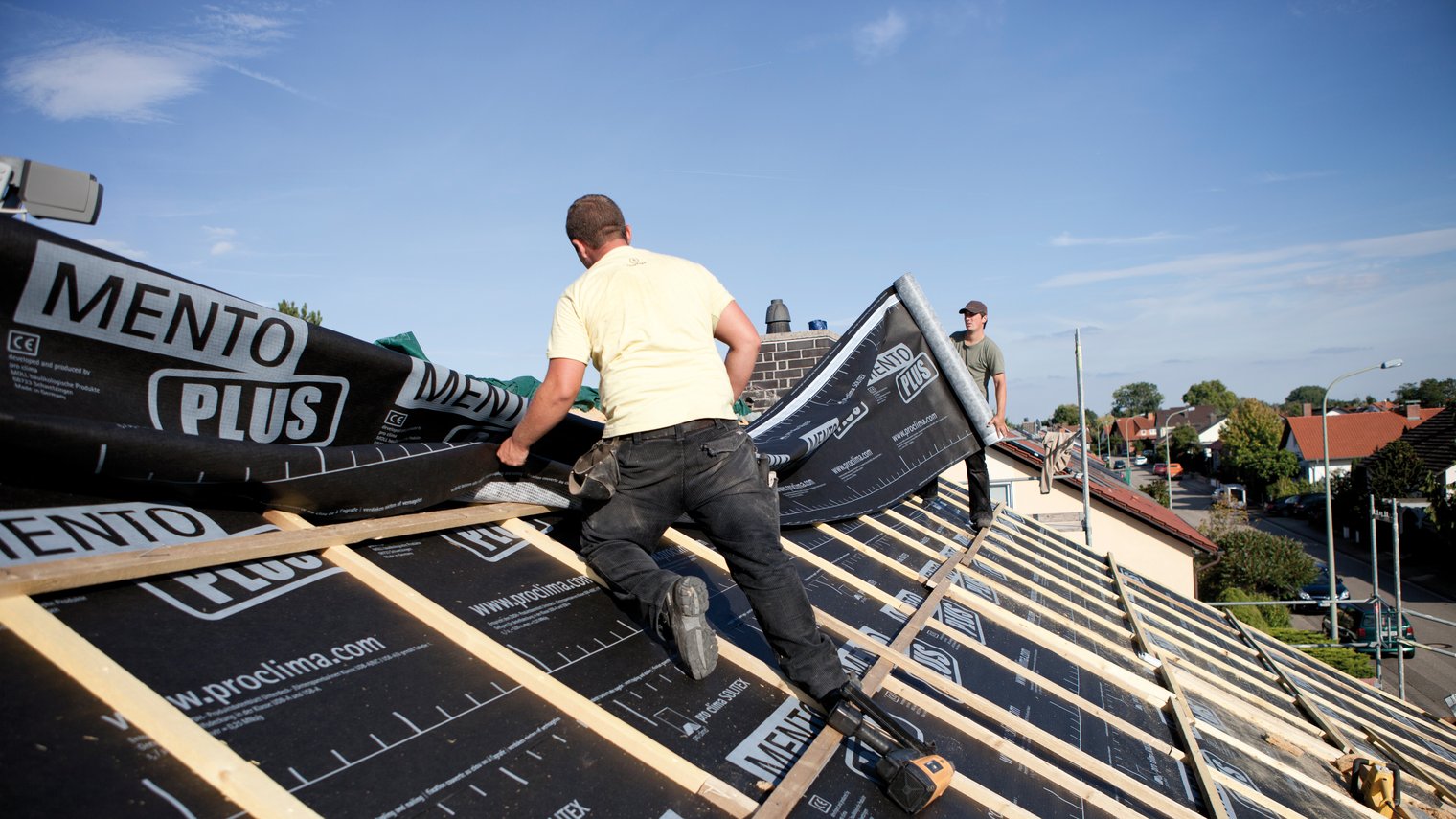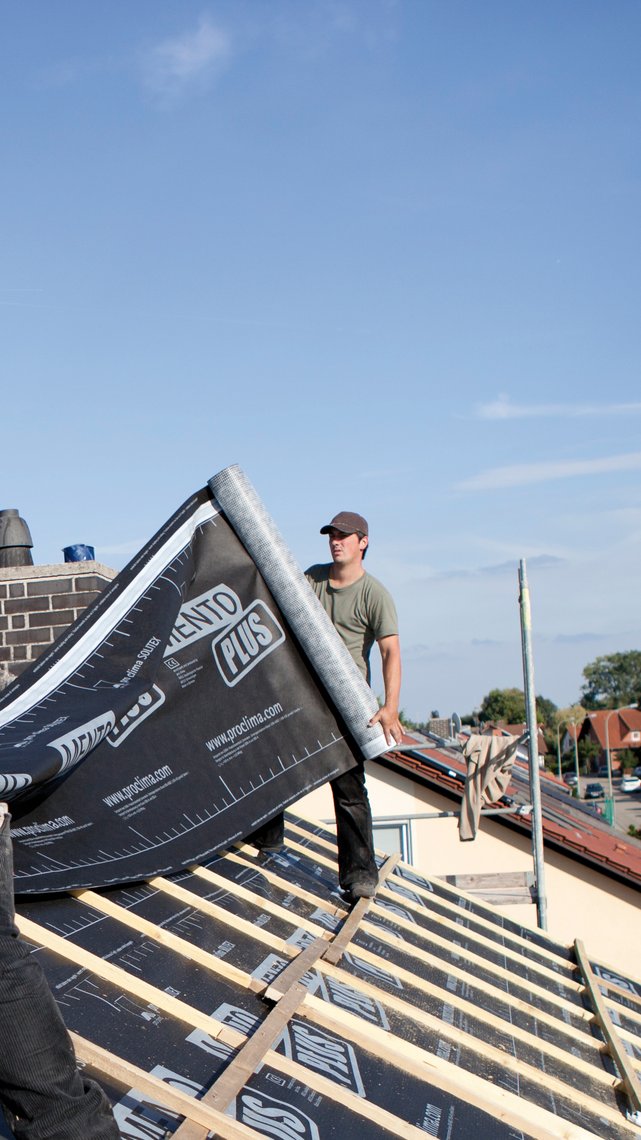 La couche d’étanchéité au vent protège l’isolant contre la pluie, la neige et le vent du côté extérieur. Elle veille en outre à ce que l’isolation ne soit pas traversée par un courant d’air froid et puisse ainsi garder toute son efficacité.