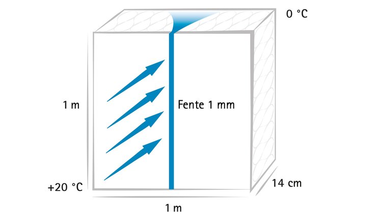 Dans le même laps de temps, la quantité d’humidité qui pénètre par convection dans la construction, par une fente de 1 mm de large présente dans le frein-vapeur, est de 800 g par mètre linéaire de fente.