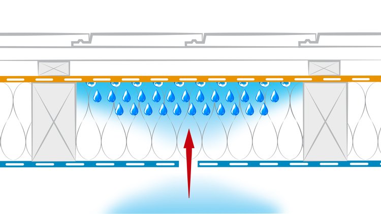 Dans les constructions en bois et en acier, l'isolation thermique sépare l'air intérieur chaud avec un taux d'humidité élevé, de l'air extérieur froid et avec une humidité absolue réduite. Lorsque, durant la saison froide, de l'air ambiant chaud pénètre dans une paroi, cet air se refroidit au fil de son passage à travers cette paroi. Il peut y avoir, alors, condensation de la vapeur d'eau contenue dans l'air. La formation d'eau liquide est due au comportement physique de l'air humide : l'air chaud peut contenir davantage de molécules d'eau que l'air froid. Lorsque le taux d'humidité relative de l'air est plus élevé (65 % dans les constructions neuves par exemple), la température du point de rosée augmente et, conséquence immédiate, aussi la quantité condensat.