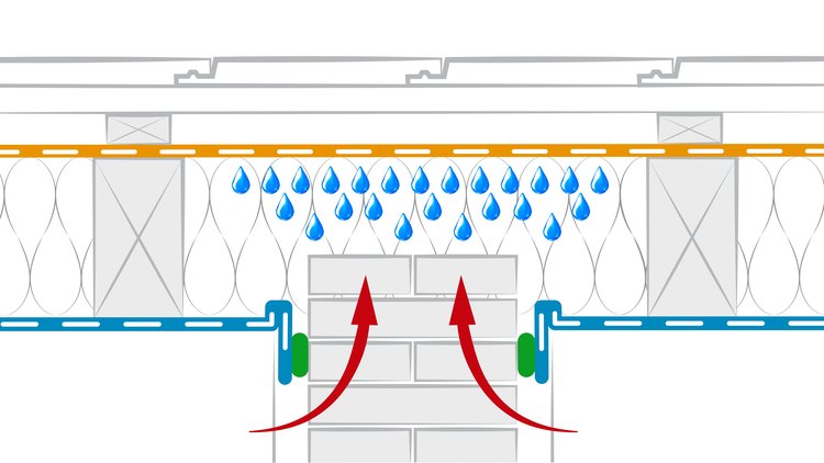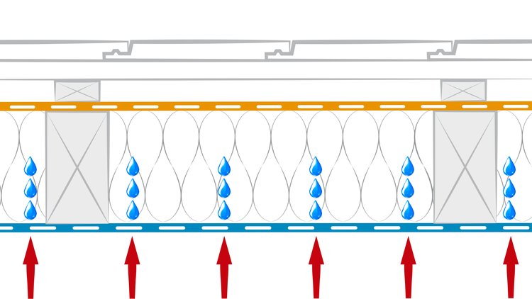 Une couche de régulation de vapeur d'eau et d’étanchéité à l’air du côté intérieur de l’isolation thermique permet d’éviter ce genre de dégâts.