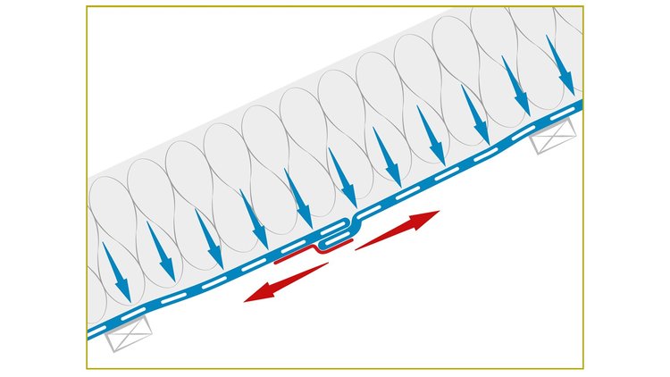 Exemple de charge en cas de chevauchement de membranes : le ruban adhésif est menacé de déchirement. Dans ce cas, les rubans adhésifs trop mous ne tiennent pas le coup.
