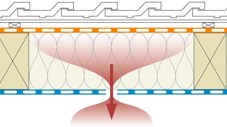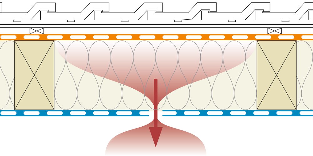 Des fentes dans la couche d’étanchéité à l’air créent des flux d’air de l’extérieur vers l’intérieur, en raison de la grande différence de température et donc de pression, et par conséquent entraînent d’importants échanges d’air entre les deux zones. L’isolation thermique ne peut plus contribuer à la protection contre la chaleur estivale, d’où l’apparition d’un climat ambiant trop chaud et désagréable.