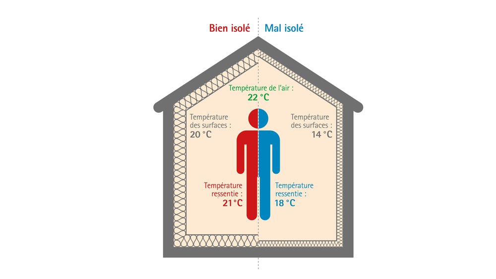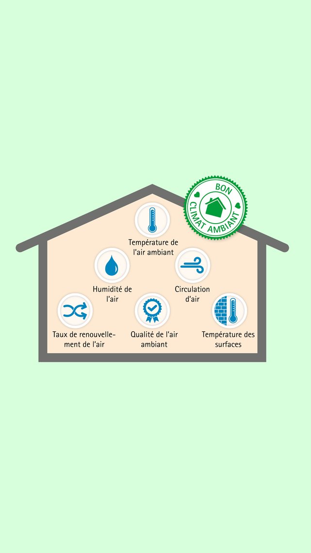 L’enveloppe du bâtiment étanche à l’air et à la chaleur joue un rôle important dans le niveau de bien-être ressenti dans une pièce à l’intérieur, ainsi que dans notre capacité à y être actif et productif. Il n’est certes pas possible de mesurer objectivement le degré de confort, chaque être humain ayant un ressenti très personnel de son environnement. Toutefois, il est possible de créer un climat ambiant dans lequel la plupart des personnes se sentent bien.