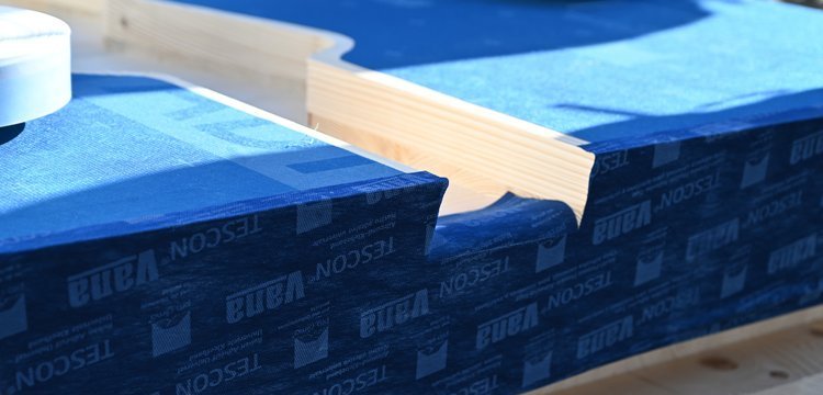 L’étanchéité à l’air à l’intérieur et l'étanchéité au vent à l’extérieur doivent être collées de manière fiable : même les plus petites fuites dans la couche d’étanchéité à l’air, causées par exemple par le manque de colle des chevauchements ou raccords des lés, ont des conséquences importantes sur l’efficacité énergétique, le climat ambiant et d’éventuels dommages causés par l’humidité à la construction. Malheureusement, les raccords adhésifs manquent parfois de fiabilité sur le long terme dans le secteur de la construction. Si l’on ajoute à cela l’humidité,la performance de collage s’en voit réduite. Il arrive que les freins-vapeur et les écrans de sous-toiture soient humides, voire mouillés lors de la pose. Les averses de pluie et la condensation à la surface des éléments de construction sont le lot de tout chantier.