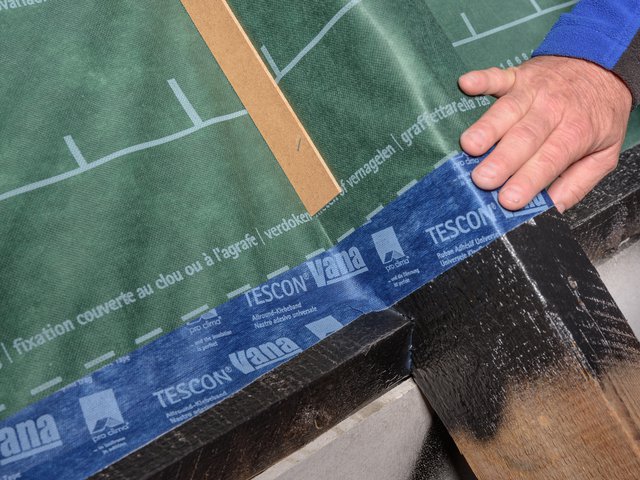 Pour l'intégration rapide de pièces de charpente à la couche d'étanchéité à l'air