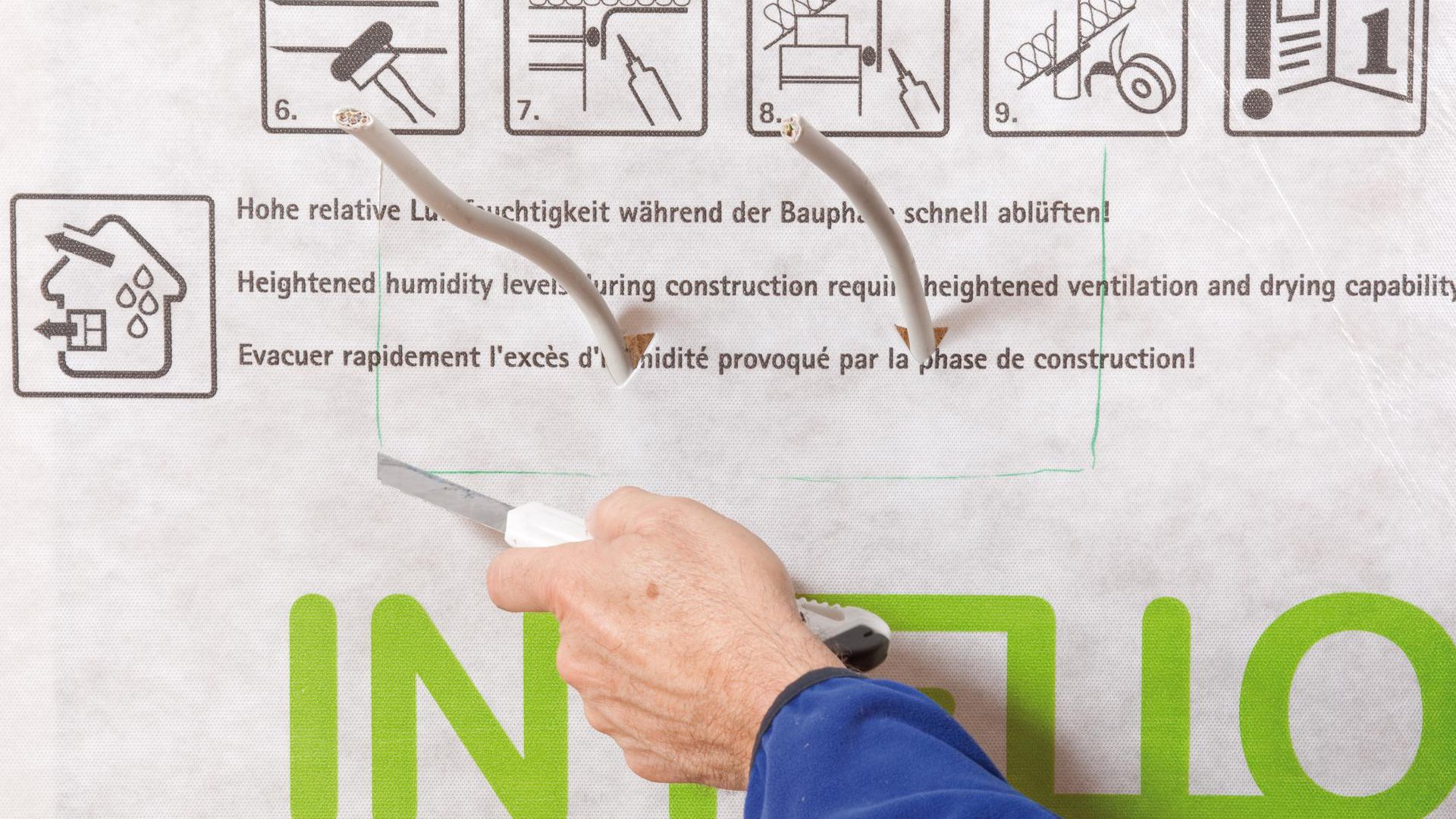Marquer l’emplacement de l’INSTAABOX et effectuer la découpe correspondante dans la couche d’étanchéité à l’air.