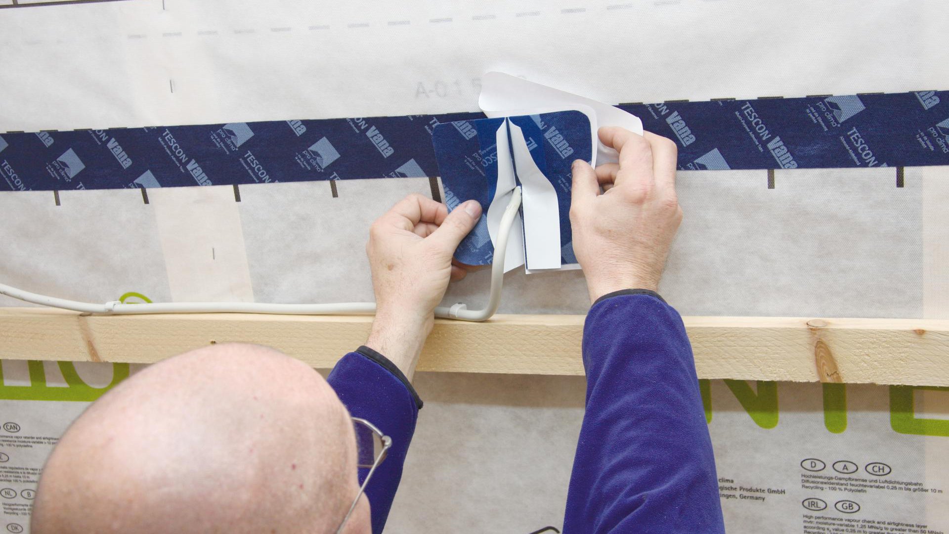 Réaliser le collage étanche à l’air des flancs entre eux et au câble, puis bien maroufler l’ensemble pour une adhérence maximale.