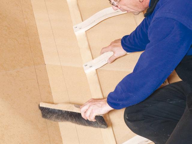 Pour garantir un raccord durable, les supports doivent être solides et lisses. Eliminer (à la brosse) les poussières et la sciure présentes.