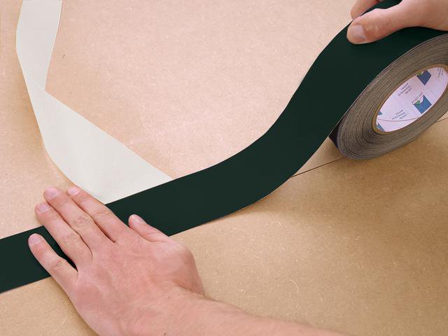 Pour les raccords étanches au vent d’écrans pare-pluie de façades à des supports lisses non minéraux, comme par exemple les panneaux dérivés du bois ou du bois raboté, centrer TESCON PENTA sur le raccord et le coller au fur et à mesure.