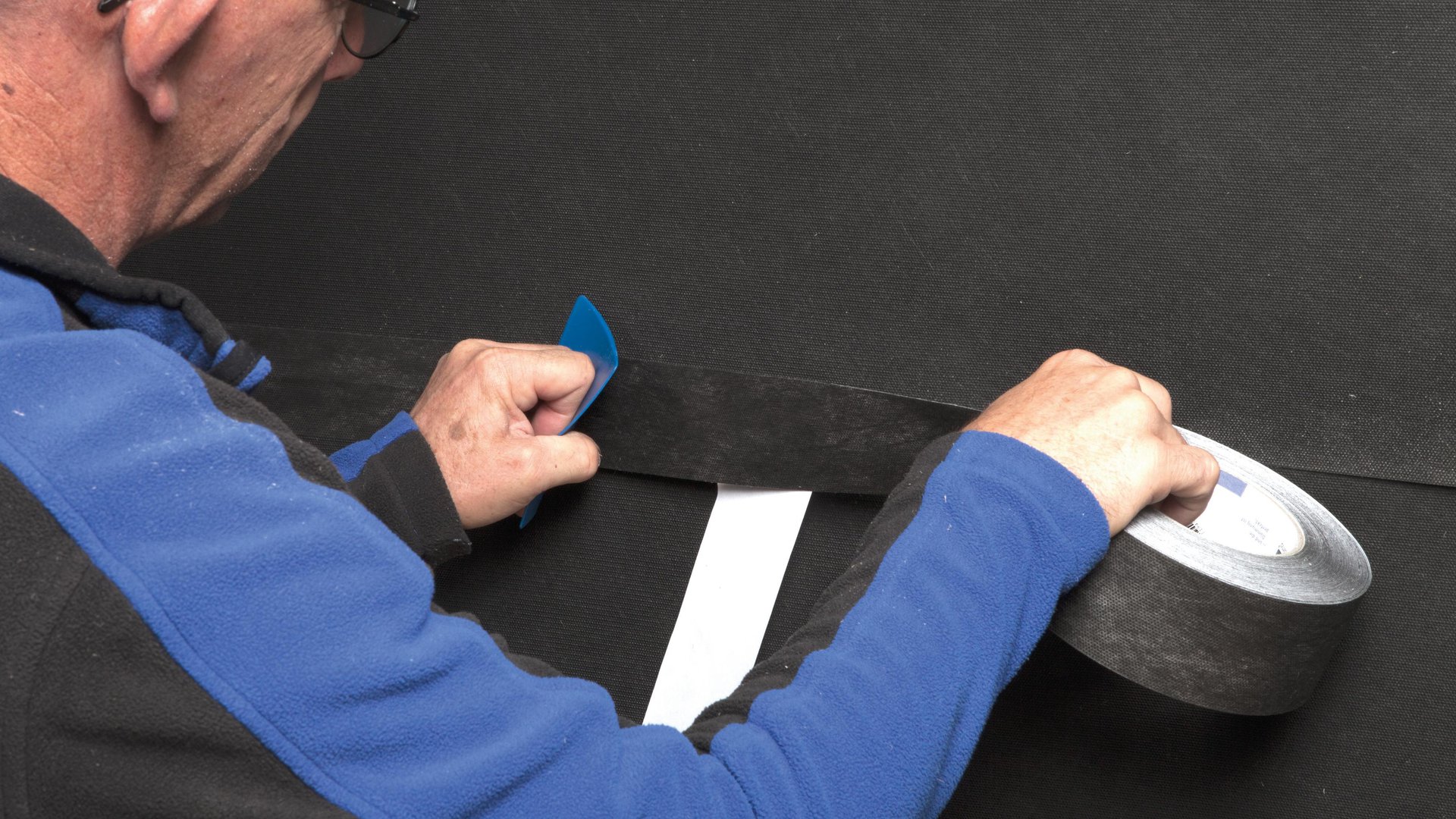 Centrer le ruban sur le joint entre les panneaux, le dérouler et le coller au fur et à mesure.