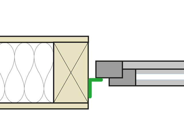 Ajuster le ruban sur la traverse dormante, sur toute la largeur du ruban adhésif, et le coller sur le premier côté de l’ébrasement.