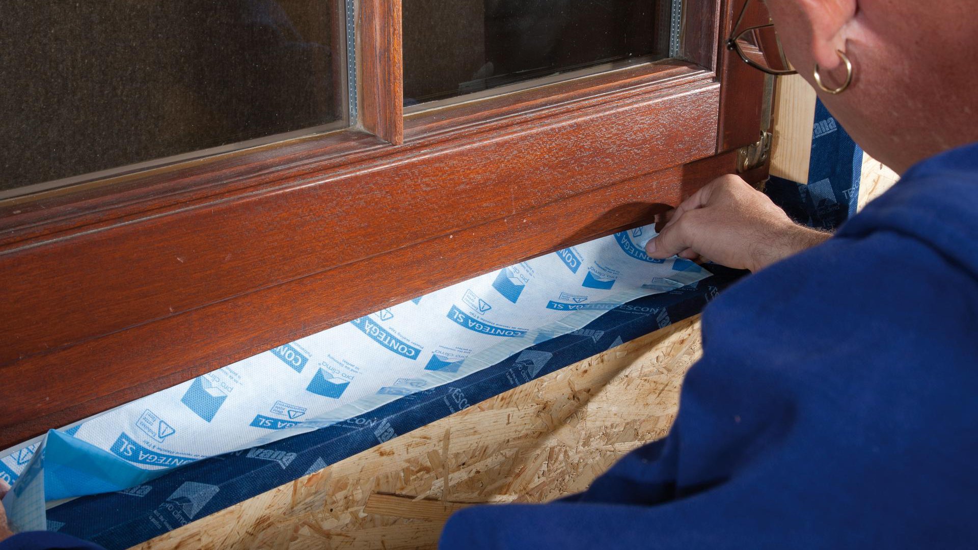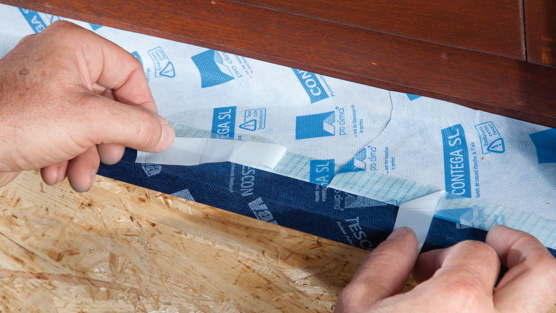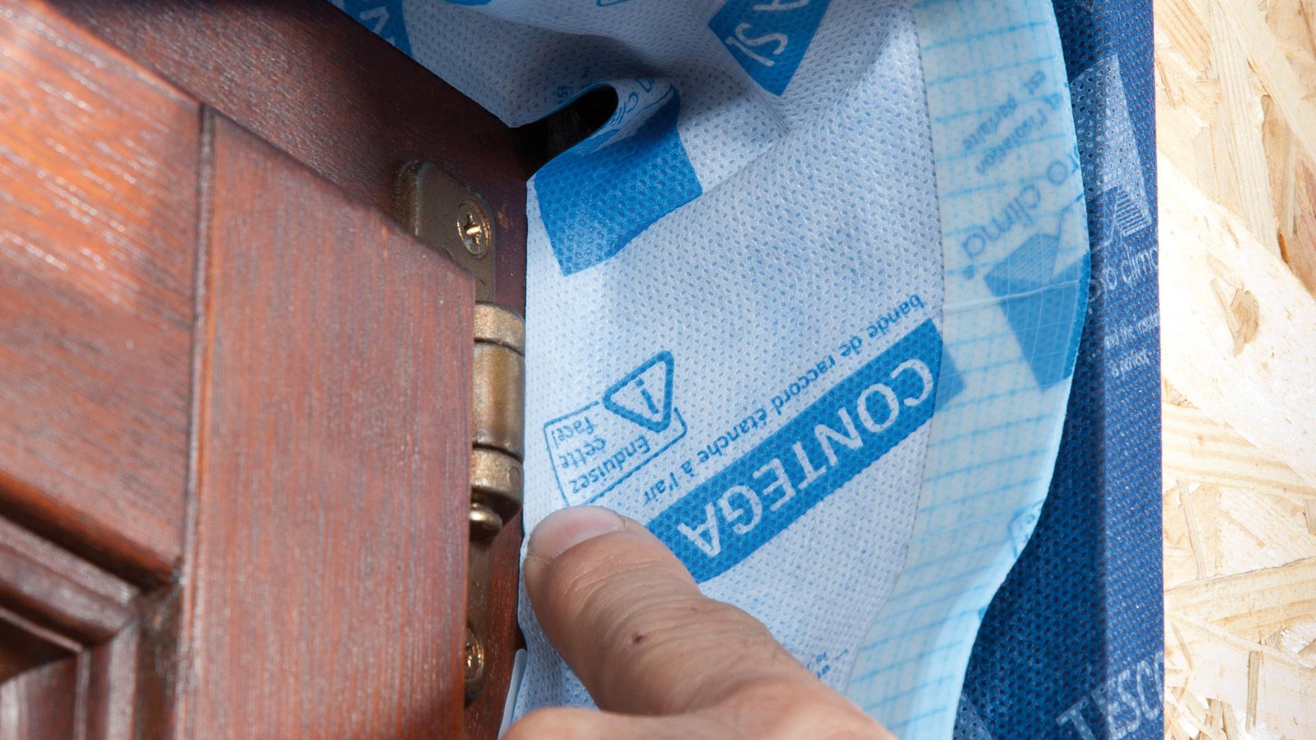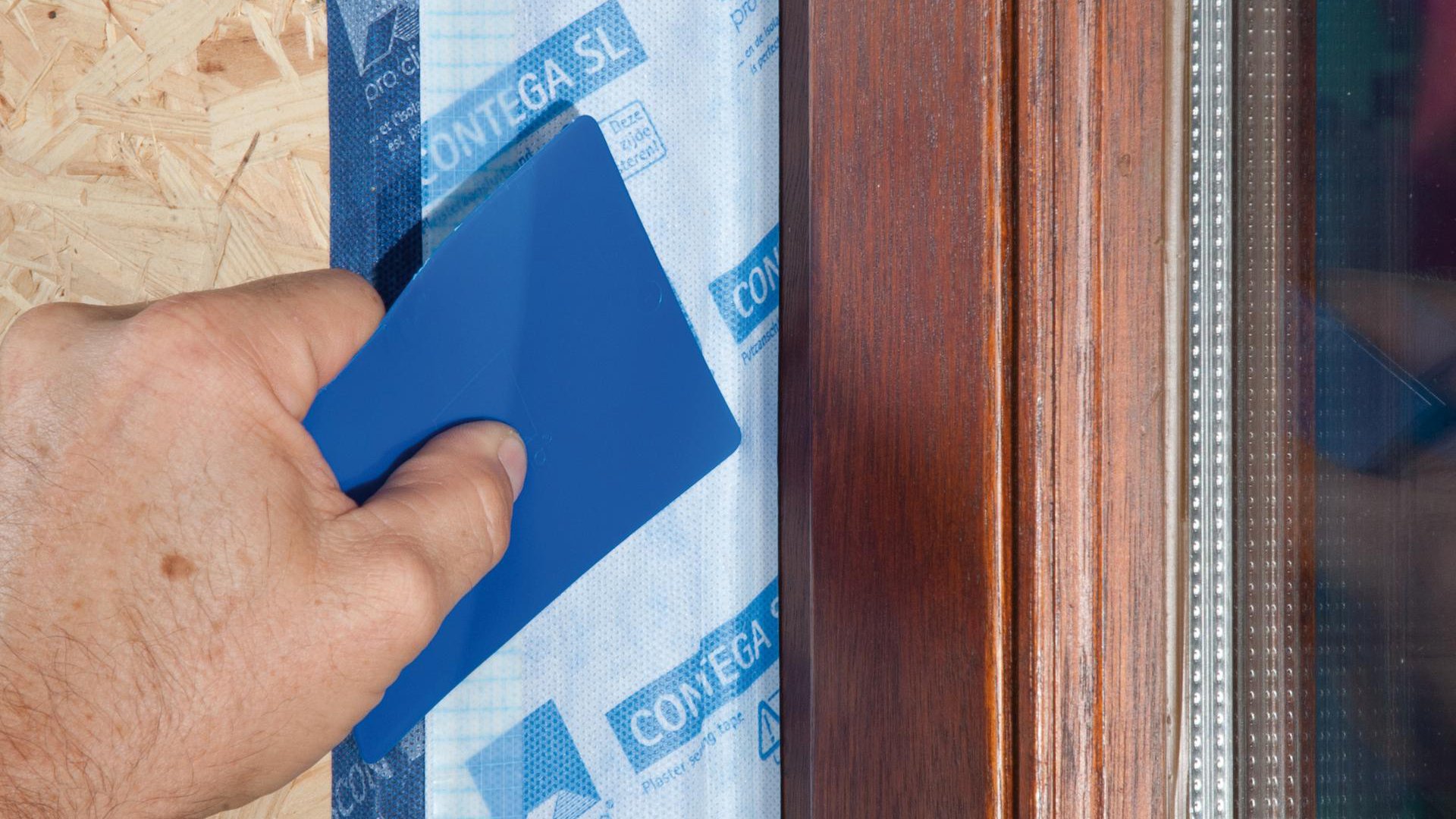 Bien maroufler le ruban pour qu’il adhère à l’embrasure/au tableau et au dormant.