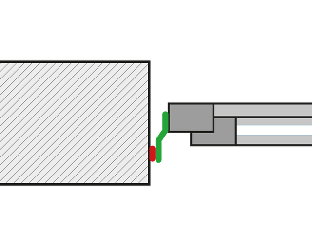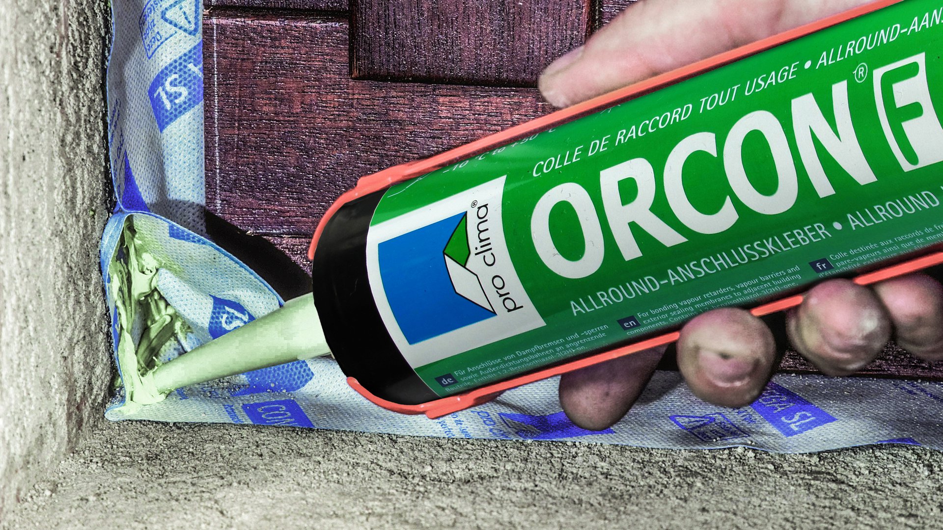 Appliquer le cordon de colle de raccord ORCON F en zigzag sur l’ébrasement, avec un diamètre d’environ 5 mm (éventuellement davantage en cas de supports très rugueux).