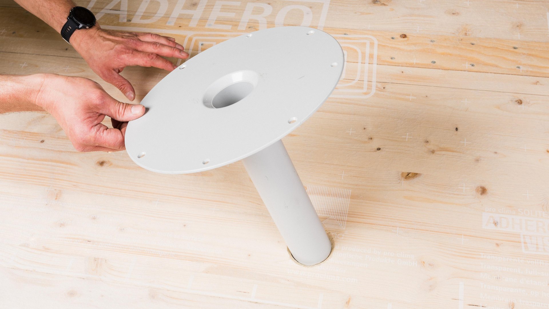 Insérer ADHERO Floor Drain dans le trou foré et le bloquer au besoin avec des vis à tête fraisée.