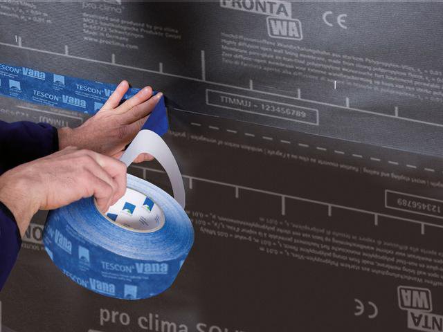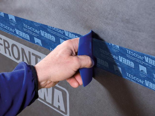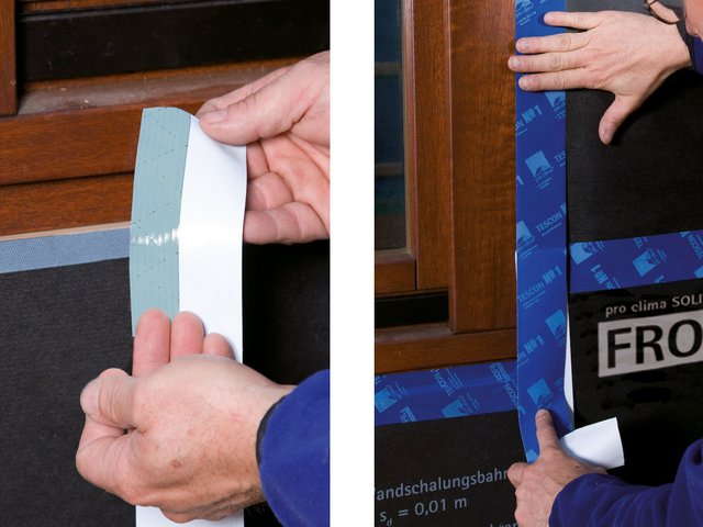 Coller la membrane de manière étanche au dormant, à l’aide du ruban adhésif d’angle TESCON PROFECT.