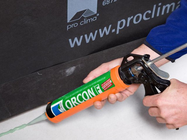 Appliquer un cordon de colle du système ORCON F de 5 mm minimum d’épaisseur (éventuellement plus pour des supports très irréguliers).
