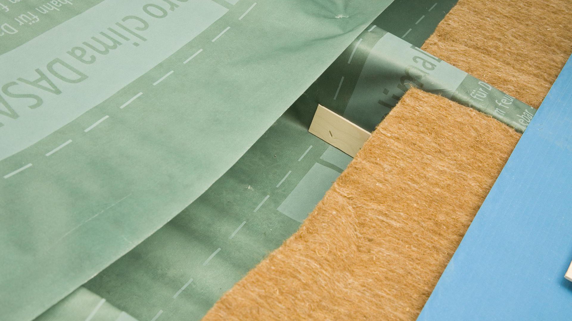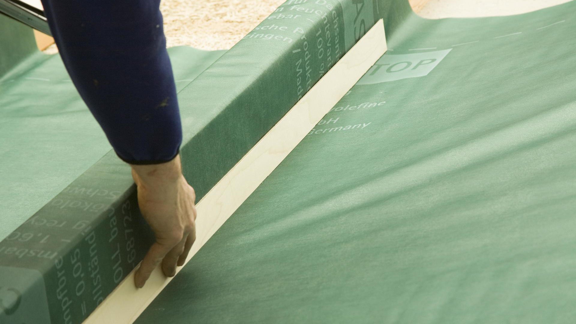Laisser dépasser la membrane d’environ 4 cm sur les éléments de construction adjacents, afin de pouvoir y réaliser ultérieurement un raccord étanche à l’air.