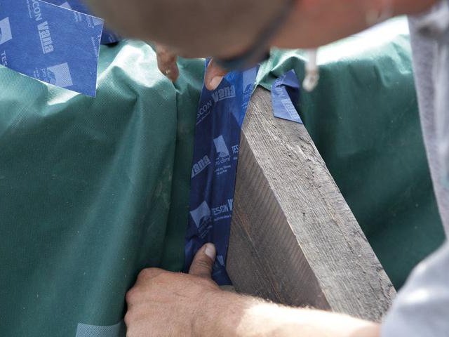 Utiliser TESCON VANA pour coller les manchettes pour conduits sur la membrane.