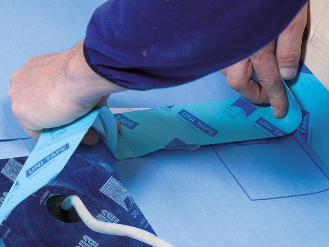 Réaliser le raccord aux chevrons lisses à l’aide du ruban adhésif universel UNI TAPE.