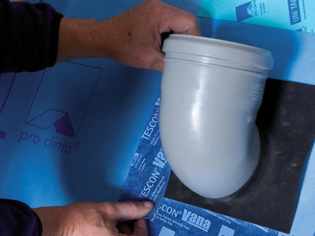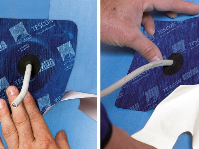 Utiliser TESCON VANA pour coller les manchettes pour conduits sur la membrane.