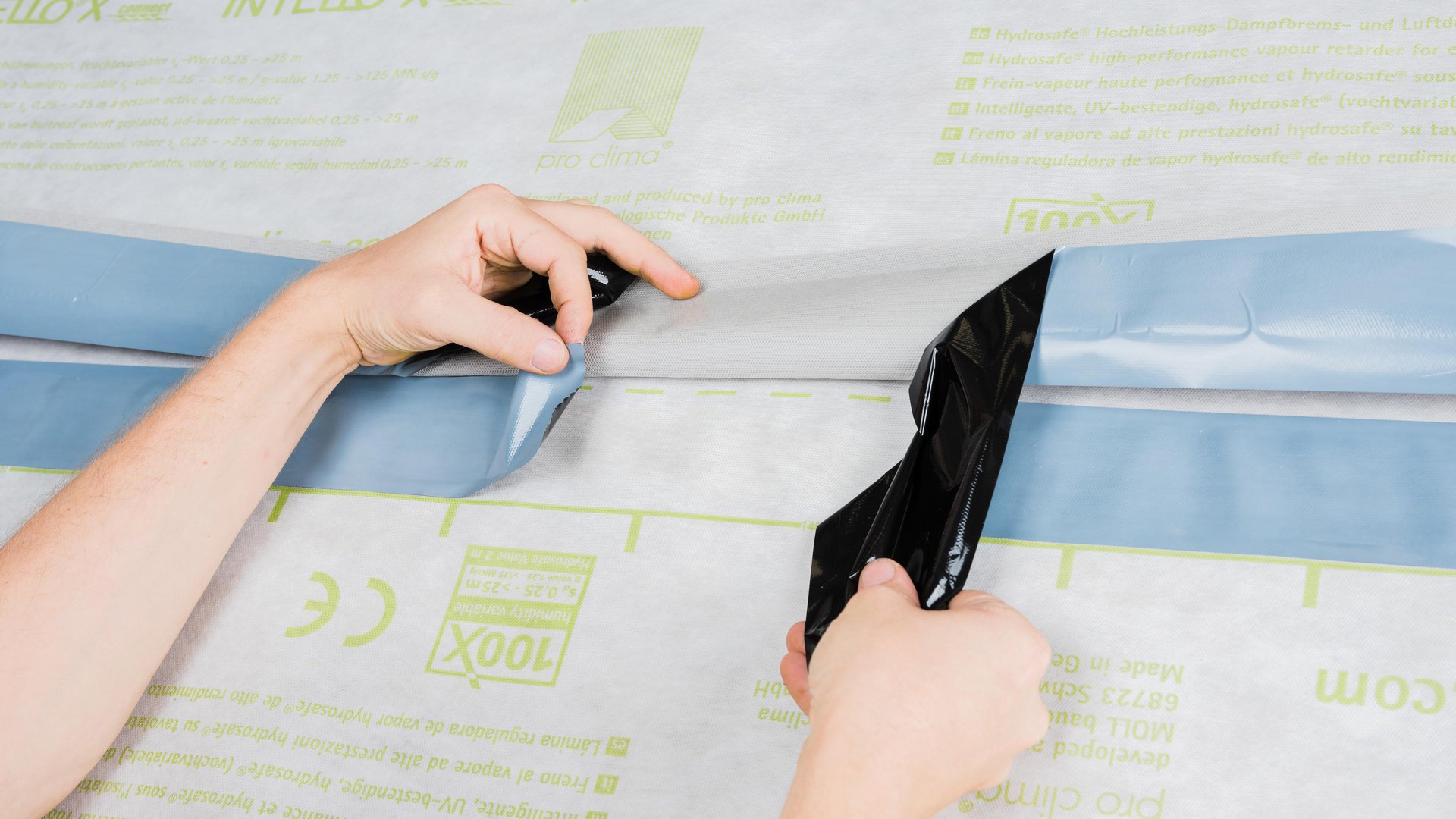 Dans le cas d’INTELLO X connect, coller le chevauchement des lés à l’aide des deux zones autocollantes intégrées.